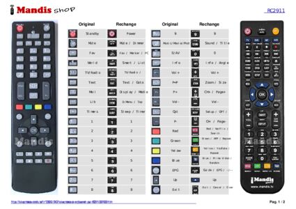 Cette télécommande remplace entièrement votre RC2911 (30074309) et offre toutes les fonctions de l'originale.
