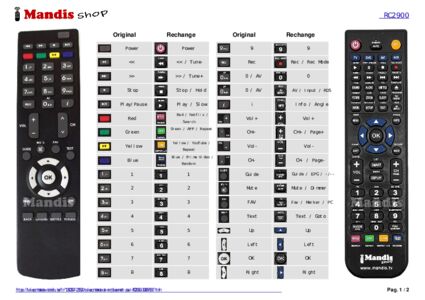 Un document est inclus pour vous aider à utiliser facilement la nouvelle télécommande, en indiquant la correspondance des boutons.