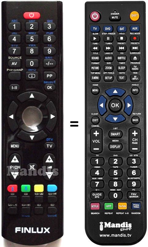 Télécommande qui remplace celle d'origine car elle possède les mêmes fonctions.