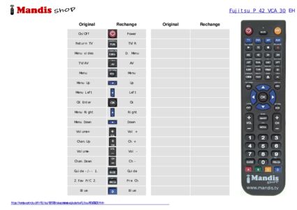 Un document est inclus pour vous aider à utiliser facilement la nouvelle télécommande, en indiquant la correspondance des boutons.