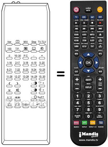 Télécommande qui remplace celle d'origine car elle possède les mêmes fonctions. Il ne s'agit pas d'une télécommande universelle mais d'une télécommande qui remplace celle d'origine. Vous recevrez la télécommande prête à fonctionner, vous n'aurez qu'à mettre les piles. Il n'est pas nécessaire de la programmer. Nous vous garantissons que la télécommande aura exactement les mêmes fonctions que celle d'origine.