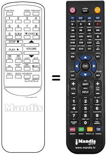Télécommande qui remplace celle d'origine car elle possède les mêmes fonctions.
