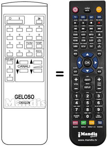 Télécommande qui remplace celle d'origine car elle possède les mêmes fonctions. Il ne s'agit pas d'une télécommande universelle mais d'une télécommande qui remplace celle d'origine. Vous recevrez la télécommande prête à fonctionner, vous n'aurez qu'à mettre les piles. Il n'est pas nécessaire de la programmer. Nous vous garantissons que la télécommande aura exactement les mêmes fonctions que celle d'origine.