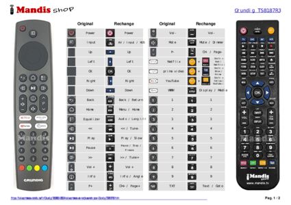Un document est inclus pour vous aider à utiliser facilement la nouvelle télécommande, en indiquant la correspondance des boutons.