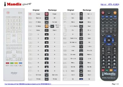Un document est inclus pour vous aider à utiliser facilement la nouvelle télécommande, en indiquant la correspondance des boutons.