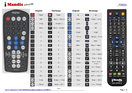Un document est inclus pour vous aider à utiliser facilement la nouvelle télécommande, en indiquant la correspondance des boutons.