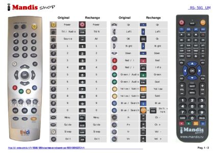 Cette télécommande remplace la plupart des fonctions de votre RS-591 UM (014002770). Il ne s'agit pas d'une télécommande universelle, mais d'une copie avec la plupart des touches et des fonctions de votre télécommande d'origine.