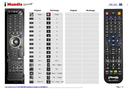 Cette télécommande remplace entièrement votre RM-303 et offre toutes les fonctions de l'originale.