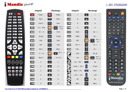 Un document est inclus pour vous aider à utiliser facilement la nouvelle télécommande, en indiquant la correspondance des boutons.