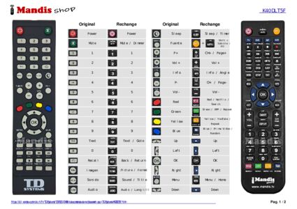 Un document est inclus pour vous aider à utiliser facilement la nouvelle télécommande, en indiquant la correspondance des boutons.