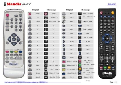 Un document est inclus pour vous aider à utiliser facilement la nouvelle télécommande, en indiquant la correspondance des boutons.