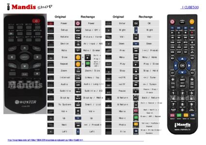 Un document est inclus pour vous aider à utiliser facilement la nouvelle télécommande, en indiquant la correspondance des boutons.