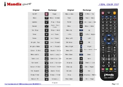 Un document est inclus pour vous aider à utiliser facilement la nouvelle télécommande, en indiquant la correspondance des boutons.