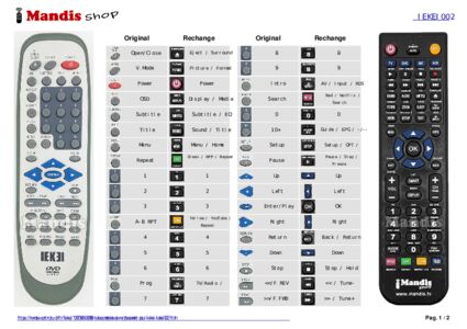 Cette télécommande remplace entièrement votre Iekei002 et offre toutes les fonctions de l'originale.