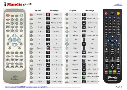 Un document est inclus pour vous aider à utiliser facilement la nouvelle télécommande, en indiquant la correspondance des boutons.