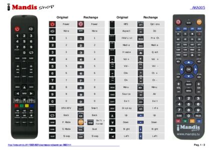 Un document est inclus pour vous aider à utiliser facilement la nouvelle télécommande, en indiquant la correspondance des boutons.