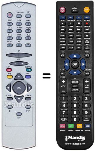 Télécommande qui remplace celle d'origine car elle possède les mêmes fonctions.