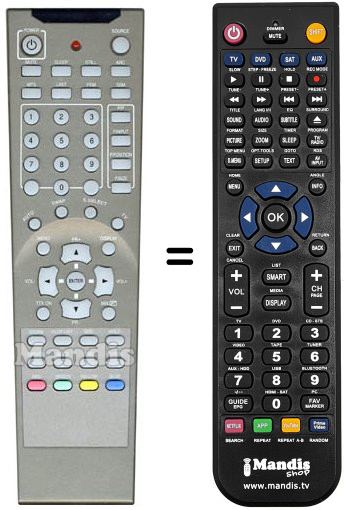 Télécommande qui remplace celle d'origine car elle possède les mêmes fonctions.