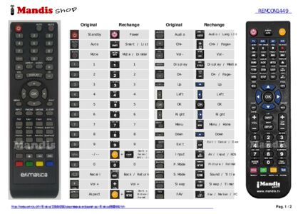 Un document est inclus pour vous aider à utiliser facilement la nouvelle télécommande, en indiquant la correspondance des boutons.