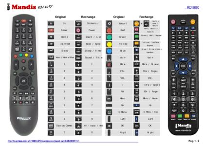 Un document est inclus pour vous aider à utiliser facilement la nouvelle télécommande, en indiquant la correspondance des boutons.