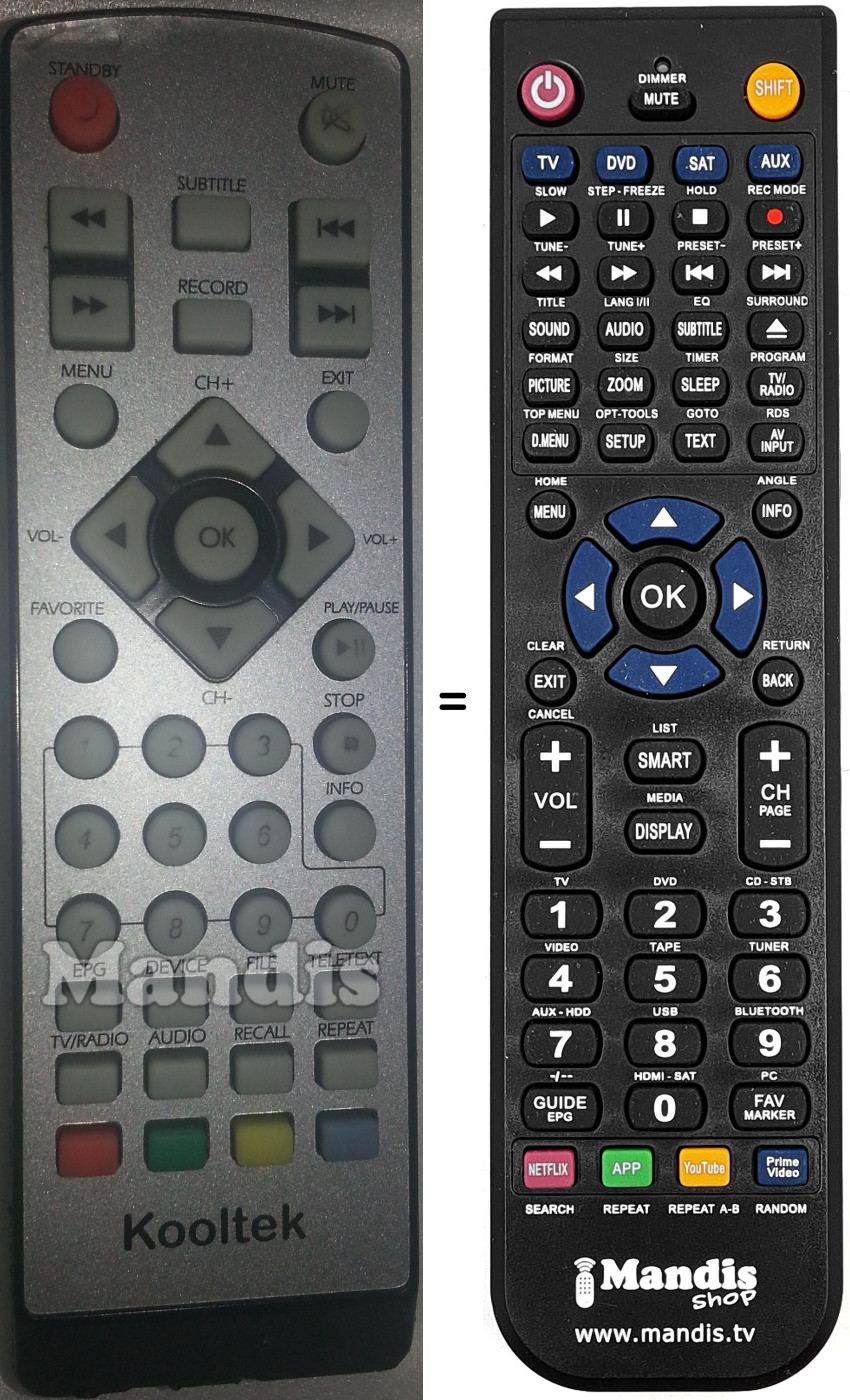 Télécommande qui remplace celle d'origine car elle possède les mêmes fonctions.