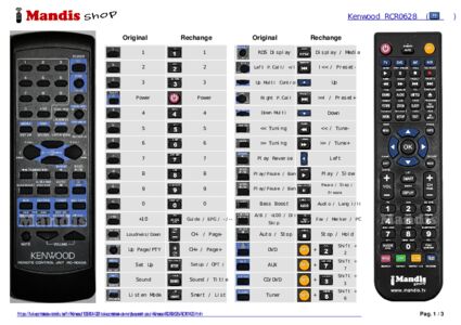Un document est inclus pour vous aider à utiliser facilement la nouvelle télécommande, en indiquant la correspondance des boutons.