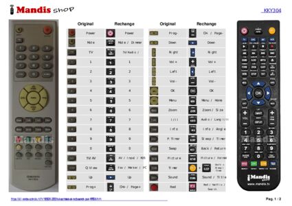 Un document est inclus pour vous aider à utiliser facilement la nouvelle télécommande, en indiquant la correspondance des boutons.