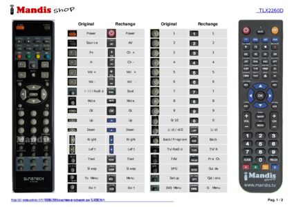 Cette télécommande remplace entièrement votre TL-X2260D et offre toutes les fonctions de l'originale.