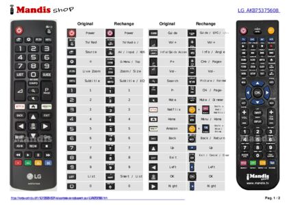 Cette télécommande remplace entièrement votre AKB75095308 et offre toutes les fonctions de l'originale.