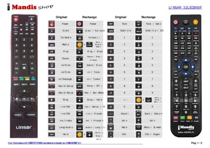 Un document est inclus pour vous aider à utiliser facilement la nouvelle télécommande, en indiquant la correspondance des boutons.
