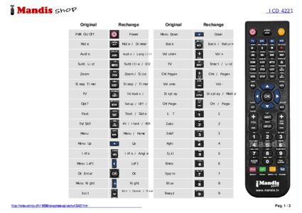 Un document est inclus pour vous aider à utiliser facilement la nouvelle télécommande, en indiquant la correspondance des boutons.