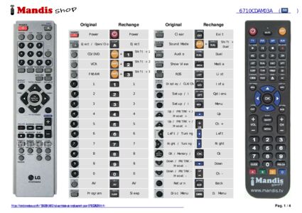 Un document est inclus pour vous aider à utiliser facilement la nouvelle télécommande, en indiquant la correspondance des boutons.
