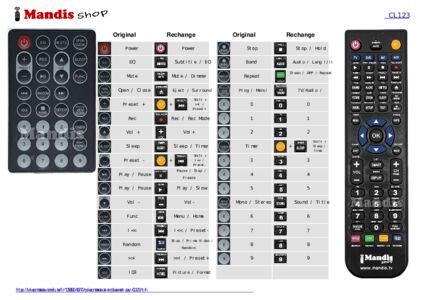 Un document est inclus pour vous aider à utiliser facilement la nouvelle télécommande, en indiquant la correspondance des boutons.