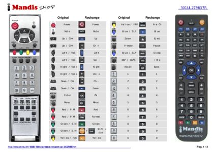 Un document est inclus pour vous aider à utiliser facilement la nouvelle télécommande, en indiquant la correspondance des boutons.