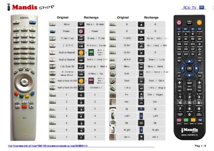 Un document est inclus pour vous aider à utiliser facilement la nouvelle télécommande, en indiquant la correspondance des boutons.