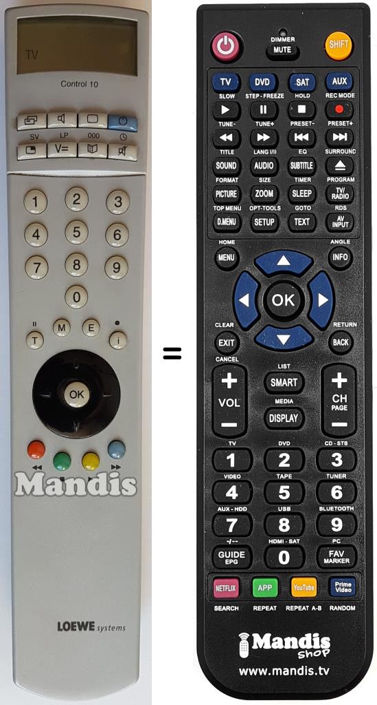 Télécommande qui remplace celle d'origine car elle possède les mêmes fonctions.