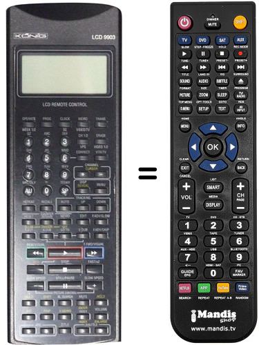 Télécommande qui remplace celle d'origine car elle possède les mêmes fonctions.