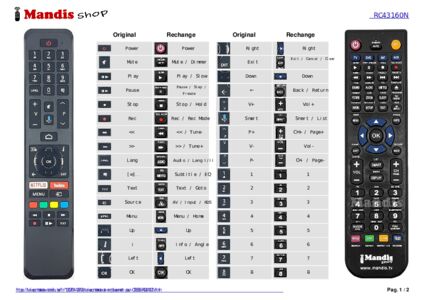 Un document est inclus pour vous aider à utiliser facilement la nouvelle télécommande, en indiquant la correspondance des boutons.