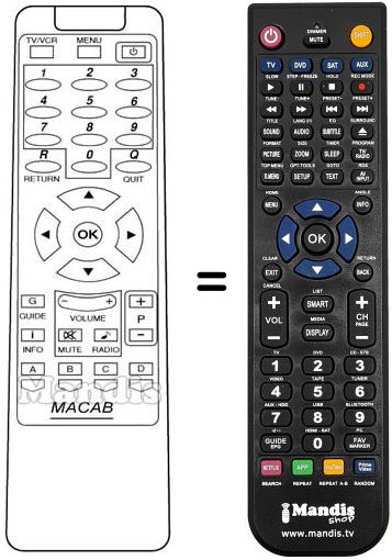 Télécommande qui remplace celle d'origine car elle possède les mêmes fonctions.