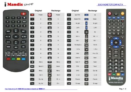 Un document est inclus pour vous aider à utiliser facilement la nouvelle télécommande, en indiquant la correspondance des boutons.
