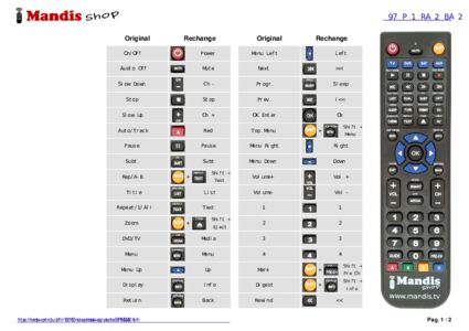 Un document est inclus pour vous aider à utiliser facilement la nouvelle télécommande, en indiquant la correspondance des boutons.