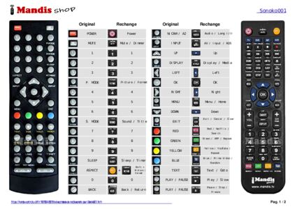 Un document est inclus pour vous aider à utiliser facilement la nouvelle télécommande, en indiquant la correspondance des boutons.