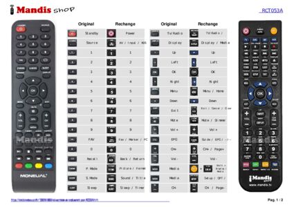 Un document est inclus pour vous aider à utiliser facilement la nouvelle télécommande, en indiquant la correspondance des boutons.