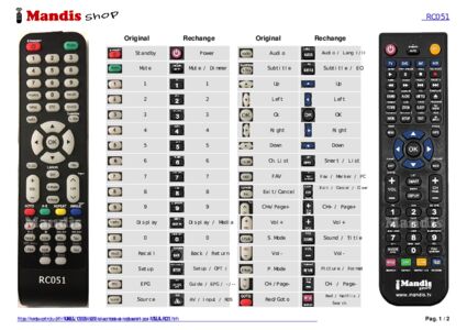 Un document est inclus pour vous aider à utiliser facilement la nouvelle télécommande, en indiquant la correspondance des boutons.