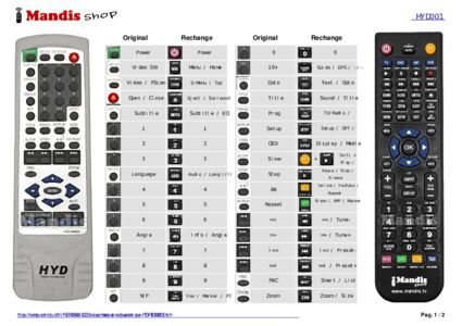 Un document est inclus pour vous aider à utiliser facilement la nouvelle télécommande, en indiquant la correspondance des boutons.