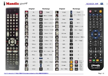 Un document est inclus pour vous aider à utiliser facilement la nouvelle télécommande, en indiquant la correspondance des boutons.