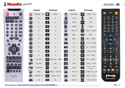 Un document est inclus pour vous aider à utiliser facilement la nouvelle télécommande, en indiquant la correspondance des boutons.