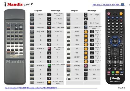 Un document est inclus pour vous aider à utiliser facilement la nouvelle télécommande, en indiquant la correspondance des boutons.