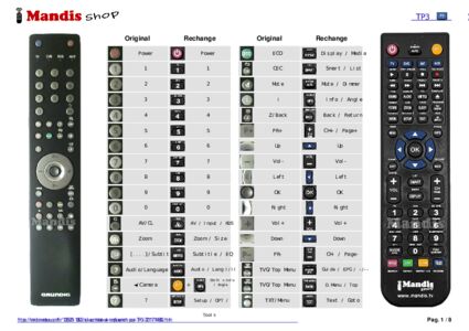 Un document est inclus pour vous aider à utiliser facilement la nouvelle télécommande, en indiquant la correspondance des boutons.