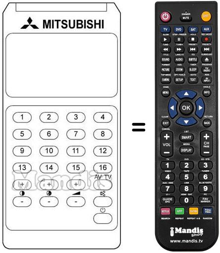 Télécommande qui remplace celle d'origine car elle possède les mêmes fonctions.